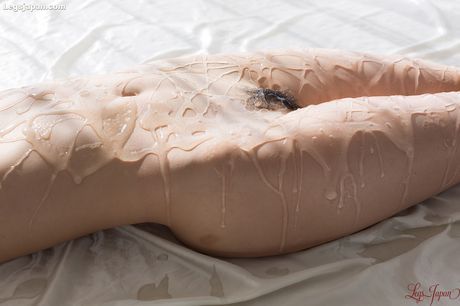 Legs Japan: Amazing Japanese babe Shino Aoi oils up her tiny tits and ass before masturbation