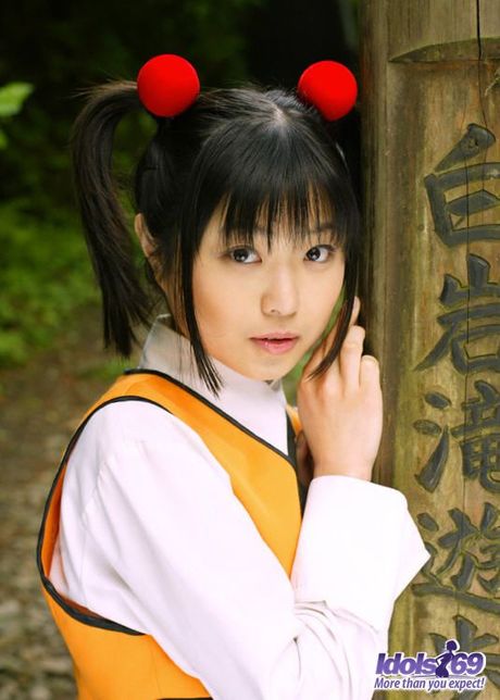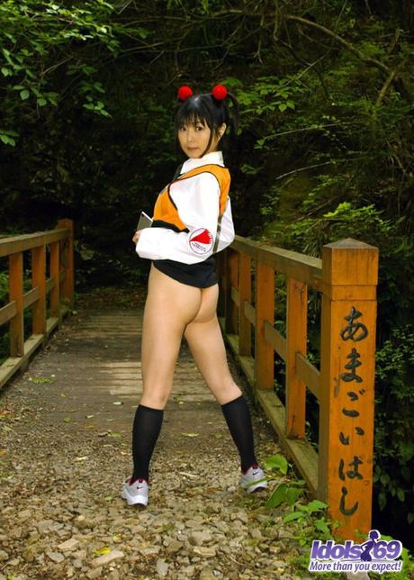 Idols 69: Asian slut in pigtails and uniform shows her hairy pussy and her favorite toys