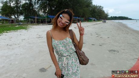 Asian Sex Diary: Asian teen Aline gets her pussy screwed on the beach