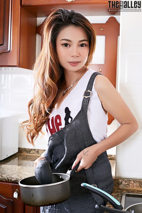 The Black Alley: Asian teen Juliet strips naked and exhibits her tiny tits and pussy
