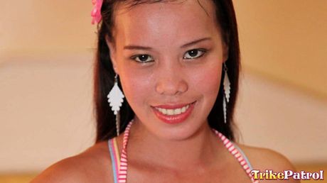 Trike Patrol: Asian teen Nica strips and shows her small tits and pink pussy