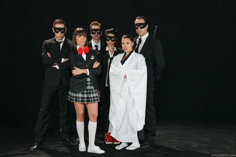 Evil Angel: Dana DeArmond and London Keyes posing in sexy costumes