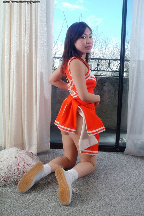 Karups Private Collection: Gracile asian brunette youthful Yumi in uniform reveals tiny tits and hairy pussy