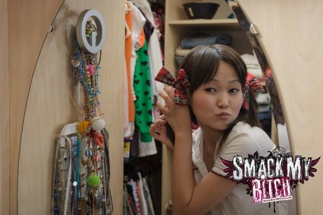 Smack My Bitch: Hot Asian schoolgirl Aliona strips and shows her sexy ass and tits
