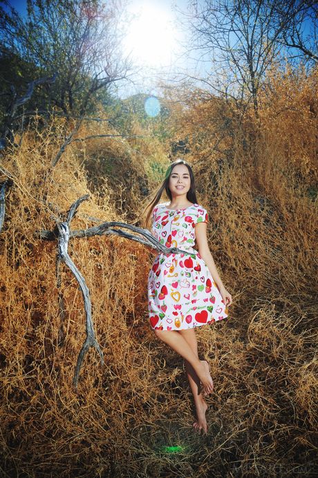 Met Art: Hot ukrainian brunette teen Li Moon exposes big hooters and spreads her legs outside