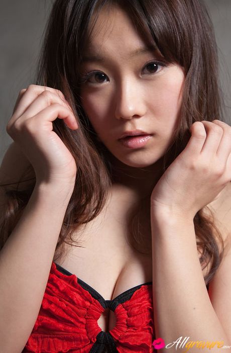 All Gravure: Kana Yuuki Asian in heels and red lingerie shows ass in red panty
