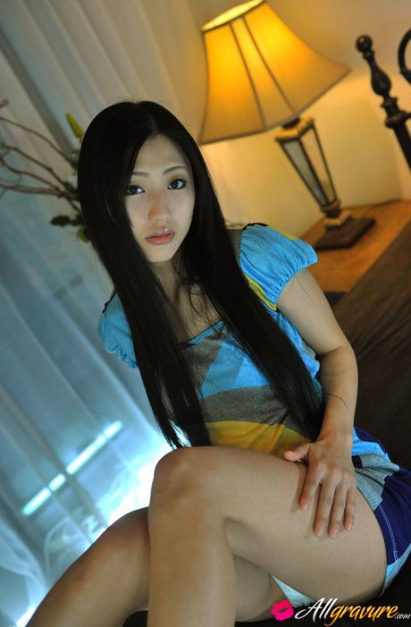 All Gravure: Mitsu Dan Asian with long beautiful hair shows curves in lingerie