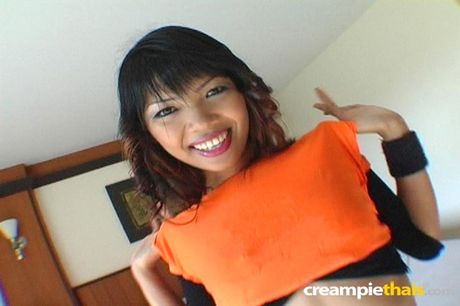 Creampie Thais: Really pretty amateur Thai girl Taew strips then gets pounded and creampied