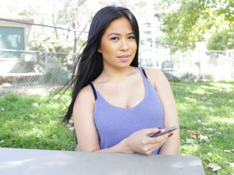 Trike Patrol: Skinny Asian teen Ashley strips and shows her tiny tits and hot ass
