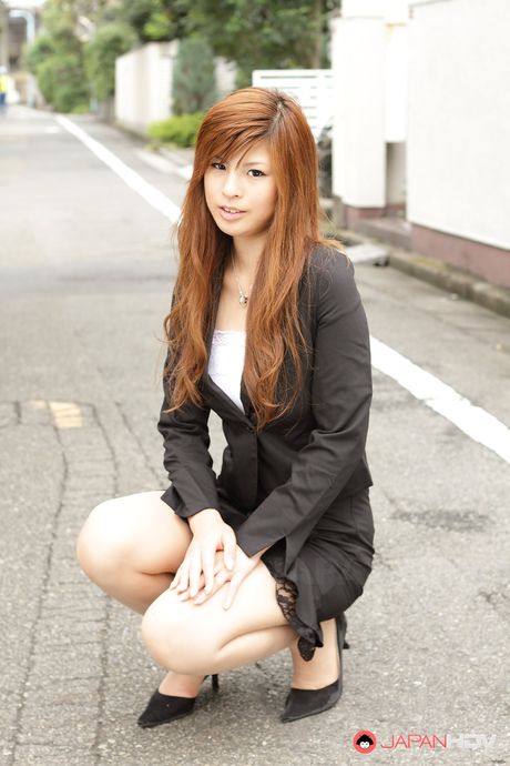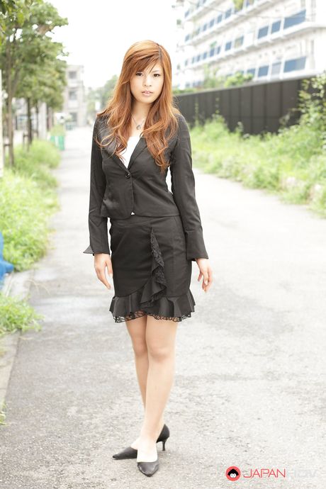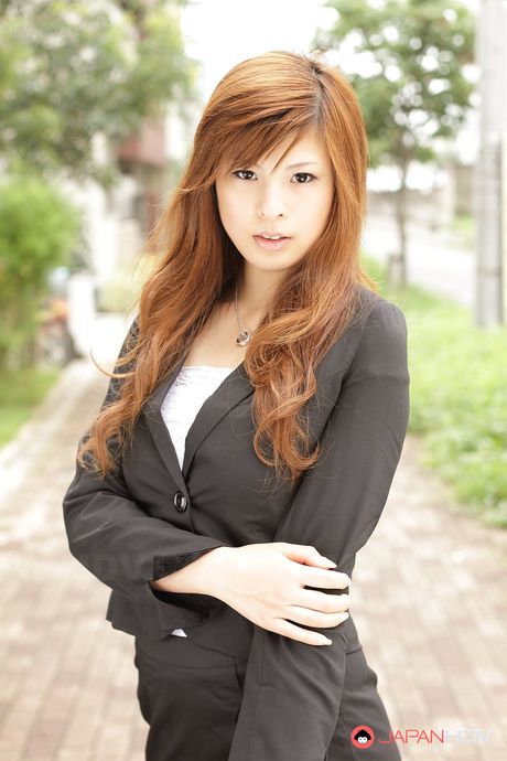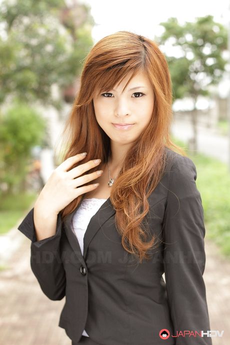 Japan HDV: Stunning redhead office lady Rina Kikukawa posing outdoors with joy